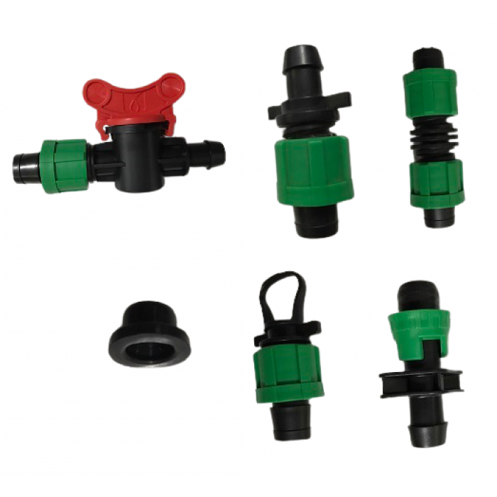 - Phụ kiện của dây tưới nhỏ giọt. Kết nối dây nhỏ giọt với đường ống chính. Sau khi sử dụng mũi khoan khoét 16