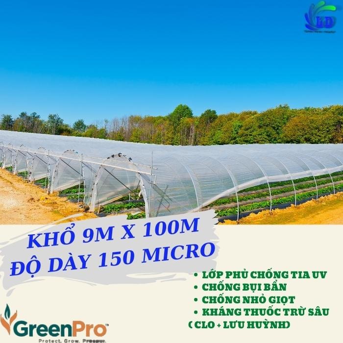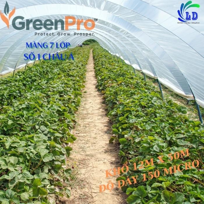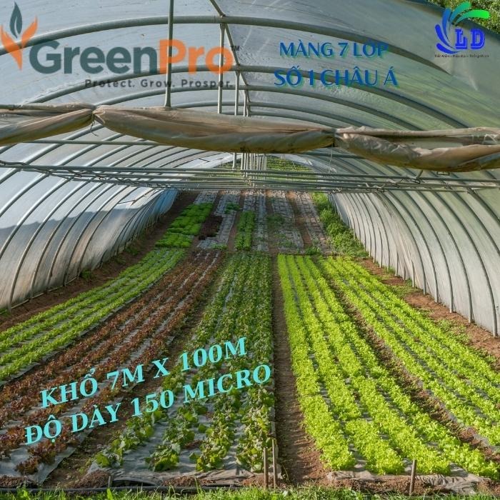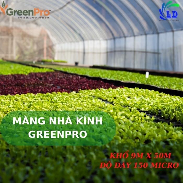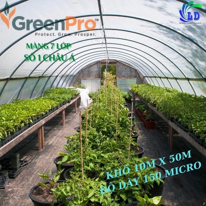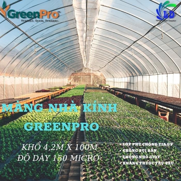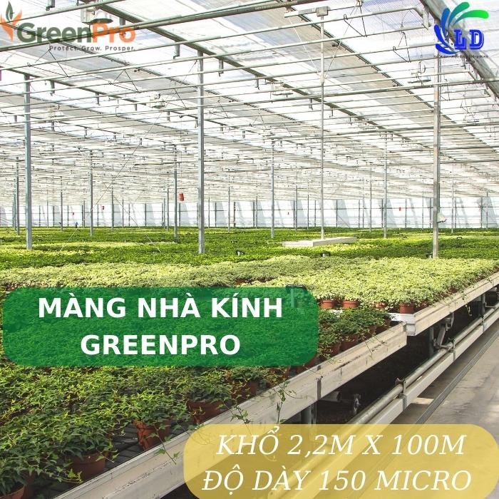 GreenPro là thương hiệu đến từ Ấn Độ, chuyên sản xuất và cung cấp vật tư nông nghiệp như màng nhà kính, lưới che nắng, lưới chống côn trùng, bạt phủ, … hàng đầu trên thế giới. Màng nhà kính GreenPro được sản xuất trên công nghệ thổi 7 lớp hiện đại đầu tiên của châu Á. Sản phẩm được tin dùng ở khắp nơi trên thế giới từ châu Á đến châu Âu hay châu Phi. Màng được thiết kế có đầy đủ các tính chất quang học và cơ học vượt trội, phù hợp với từng khu vực có khí hậu khác nhau. Với hệ thống thêm 32 chất phụ gia thành phần, được trộn đồng đều và nhất quán giữa polime và phụ gia trong mỗi 7 lớp, giúp mang lại đặc tính cơ học và tính chất quang học và độ ổn định tia cực tím vượt trội. Màng GreenPro có khả năng chống tia UV, ngăn chặn được 100% tia UV ở bước sóng 350nm và tới 700 Kly trong suốt vòng đời của màng.